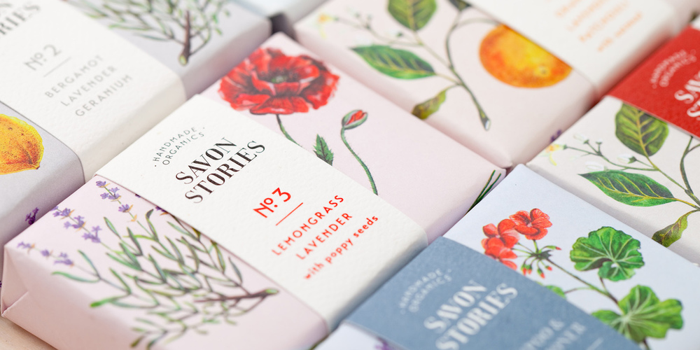 MENTA的藝術(shù)總監(jiān)勞拉·門德斯和設(shè)計(jì)師布蘭卡·希門尼斯表示使用水彩,粗細(xì)的線來實(shí)現(xiàn)這一手工制作的感覺,每一種成分沒有太完善。然后,一個(gè)微妙的調(diào)色板中選擇讓作品自己說話,用一個(gè)白色背景,所有的產(chǎn)品特性匹配相應(yīng)的元素。Savon Stories是一個(gè)英國公司,專門的手工在小批量生產(chǎn)100%有機(jī)肥皂,通過冷處理的方法即保留了所有滋補(bǔ)性質(zhì)護(hù)理肌膚。